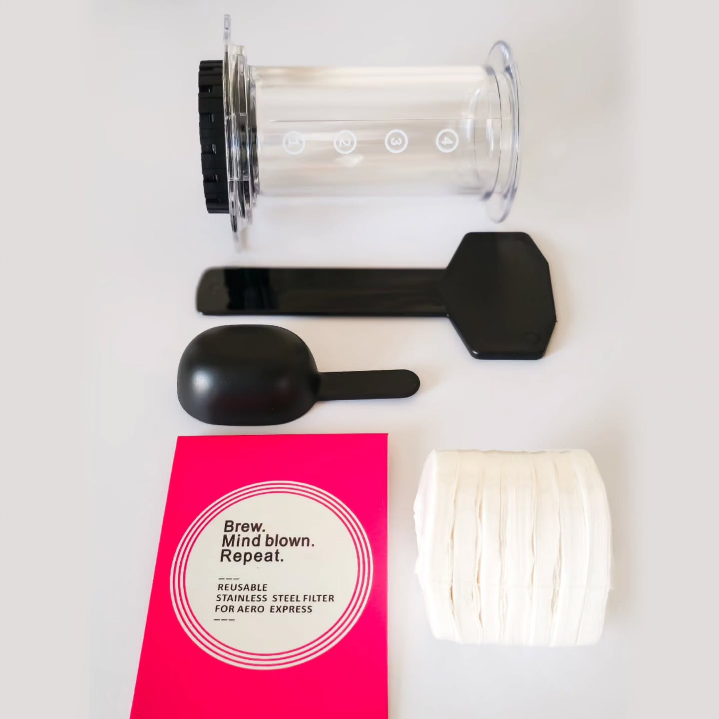 نسخة شفافة من أداة التحضير الشهيرة "أيروبرس"، تمنحك رؤية واضحة لعملية الاستخلاص لحظة بلحظة. مثالية لعشاق الدقة والتجربة البصرية، وتجمع بين المتعة والأداء في تحضير قهوة ناعمة وغنية.