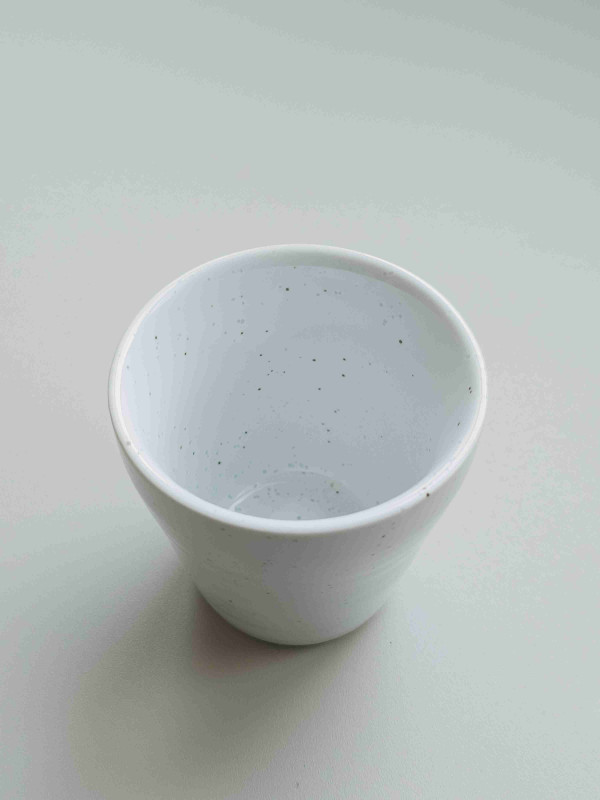 كوب سيراميكي يدوي الصنع من اليابان، باللون الأبيض الأنيق، بسعة 90–120 مل. مثالي لتقديم الإسبريسو والكورتادو، يجمع بين البساطة والحرفية ليمنحك تجربة قهوة راقية وأصيلة.